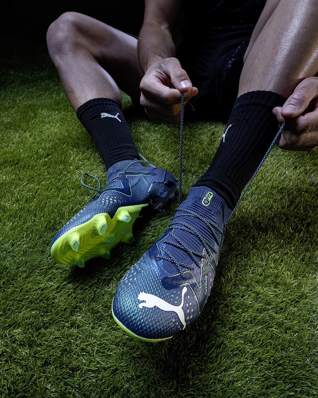 遠藤航らの着用する『フューチャー アルティメット』は、ペルシアンブルー/プーマホワイト/プログリーン。
