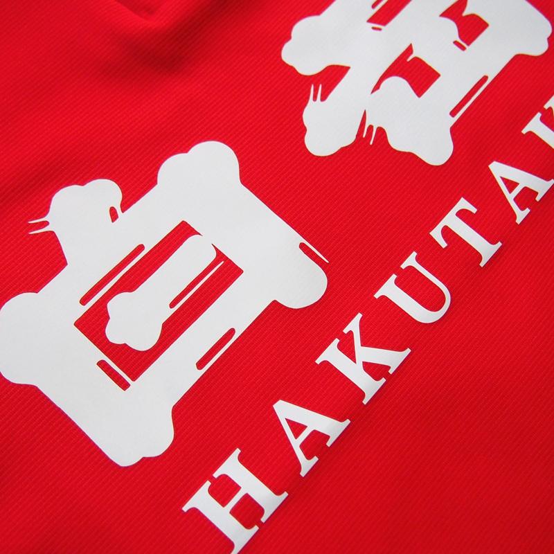 伝統のレッドを基調にスカイブルーの差し色が印象的。地元熊本の伝統や自然を象徴する馬の立ち姿を描いたエンブレムもクール。