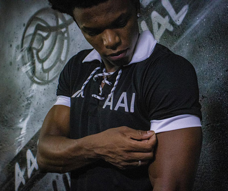 胸元はクラシックな編み上げスタイル。最近のレトロユニフォームは紐を実際には通さない「なんちゃって編み上げ」を採用するチームも多いのだが、AAIは真の編み上げが実に素晴らしい。