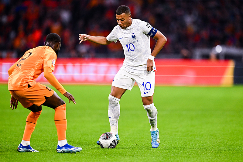 指定されたユニフォーム一式を着用してプレーするサッカー選手たち。GKを除くフィールドプレーヤー10人は基本的に同じ出で立ちで試合に臨む。
