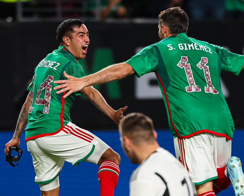 どちらも2022年カタールW杯モデルのユニフォームを着用。一見すると普通のユニフォームだが、この試合でメキシコは特殊な背番号を付けていた。