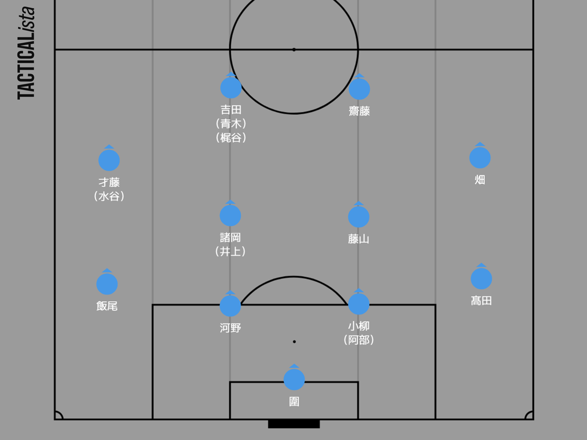 センターバックは小柳と阿部海大が熾烈なポジション争いを展開中で、第40節・大分戦で負傷した飯尾の代わりは才藤龍治が務める。