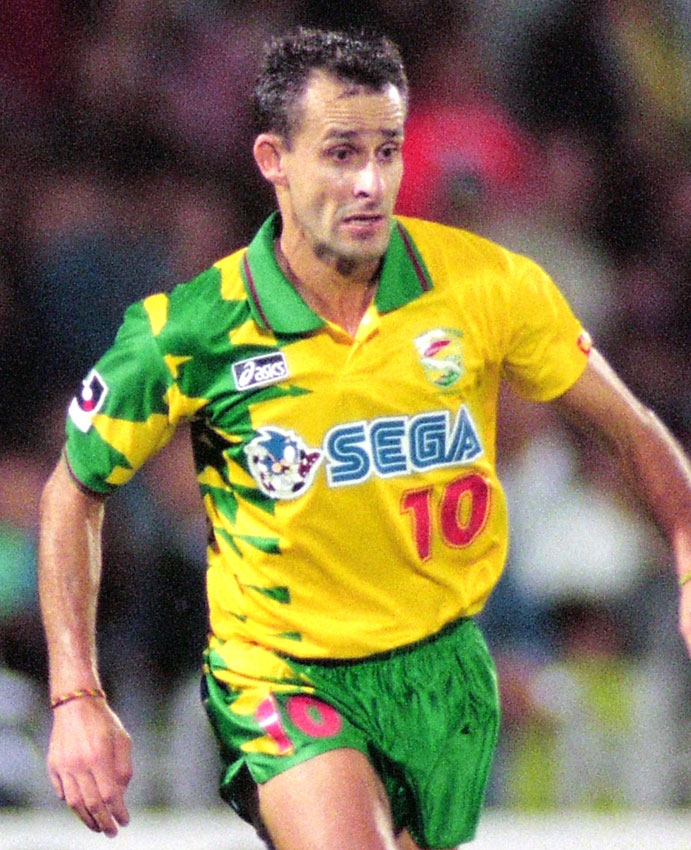 当時のMizuno製リーグ戦用ユニフォームは、Jリーグ黎明期のアイコン的なデザインが今も愛されている。だがカップ戦で着用したasics製のデザインも90年代感がたまらなく懐かしい。