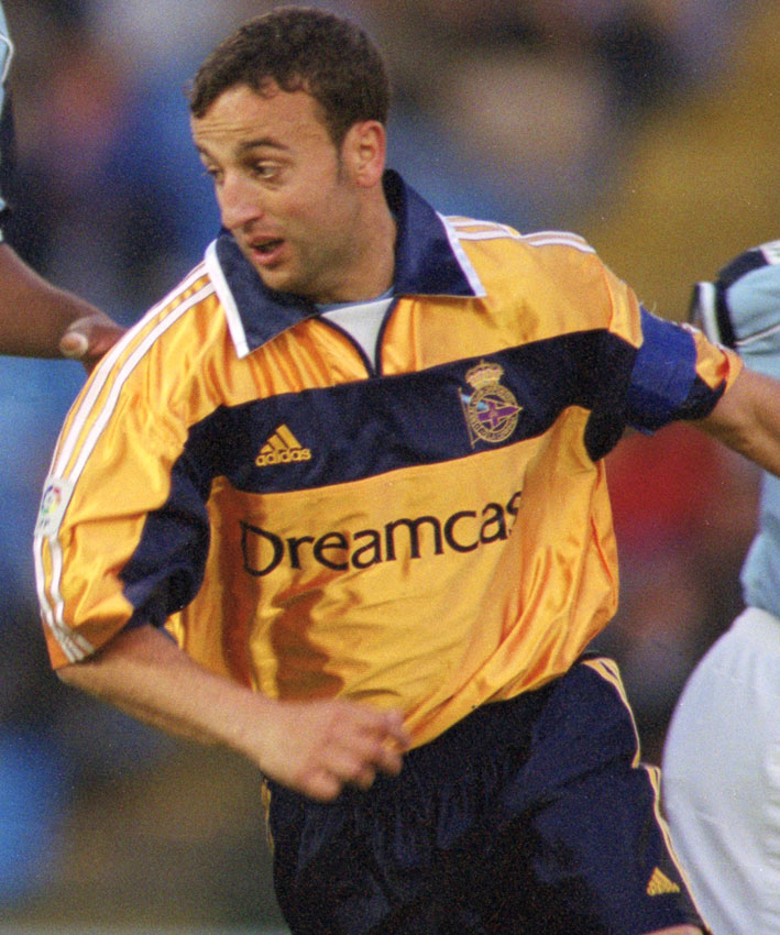 スーペルデポルと呼ばれ欧州サッカーシーズンで旋風を起こしていた時代のデポルティーボのドリキャスユニは、ゴールドとネイビーのスタイリッシュなカラーが印象的だった。