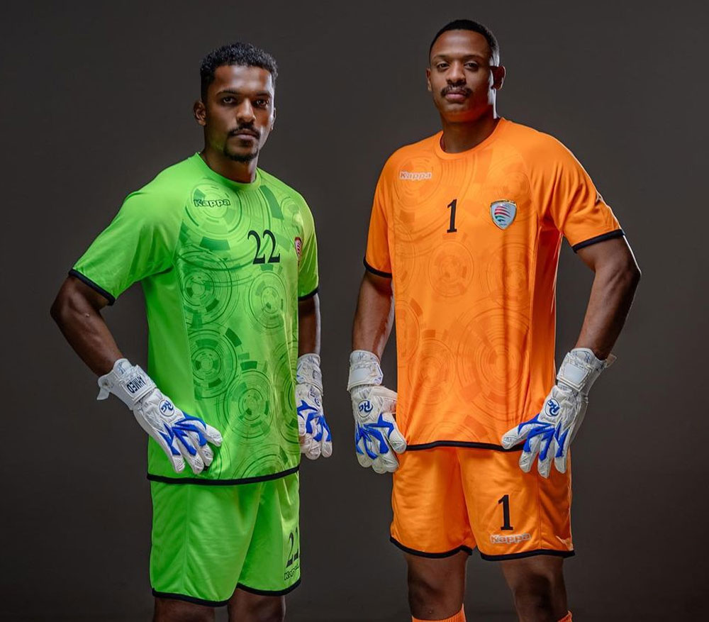 ホーム・アウェイともにグリーンを差し色に使用。「赤・白・緑」はオマーン国旗の3色で、ユニフォームの色はどちらも国旗色をベースとしている。