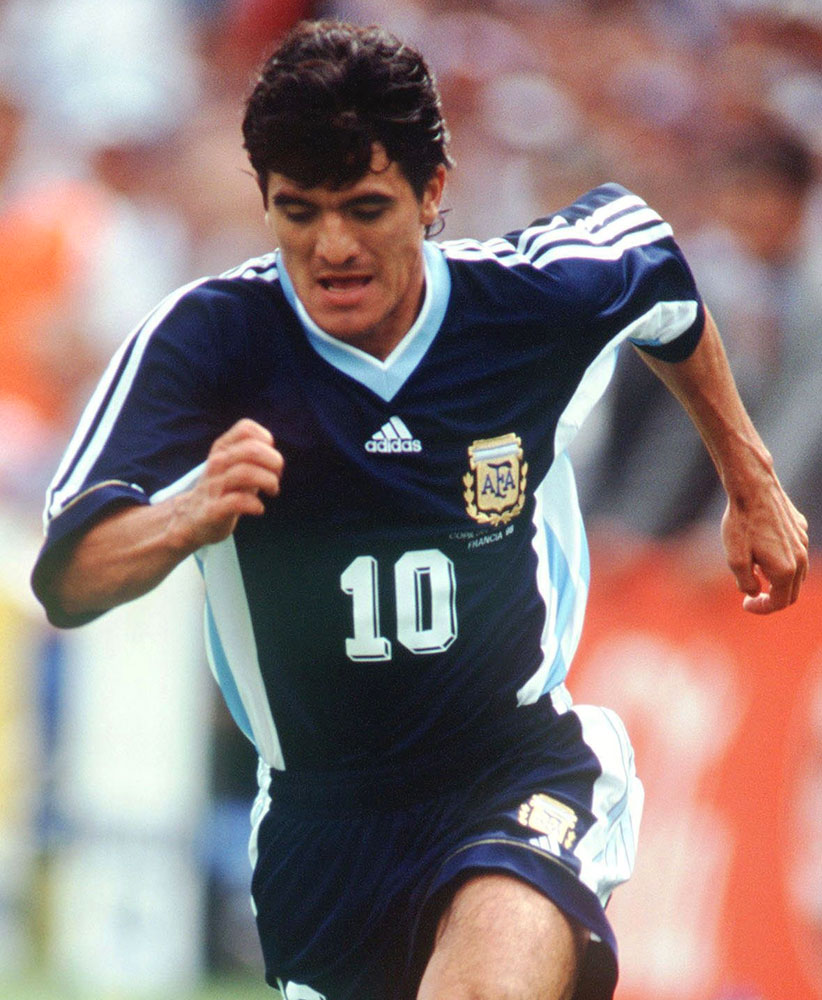 日本代表が悲願の初出場を成し遂げた1998フランスW杯。その日本の初戦の相手だったアルゼンチンは、同大会でネイビーのアウェイユニフォームを着用した。