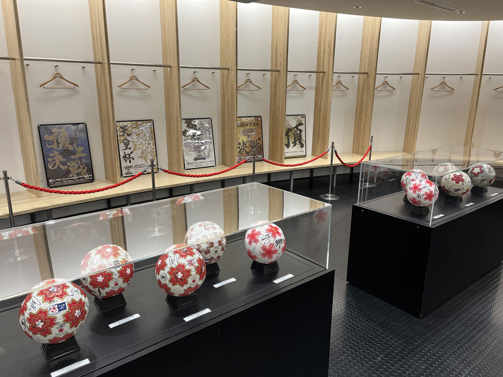 また、11月5日(日)から2024年1月31日(水)の期間限定で、歴代試合球と歴代大会ポスターも展示される。その展示場所はなんと選手ロッカールーム内という、こちらもサッカーファンには大変貴重な機会だ。