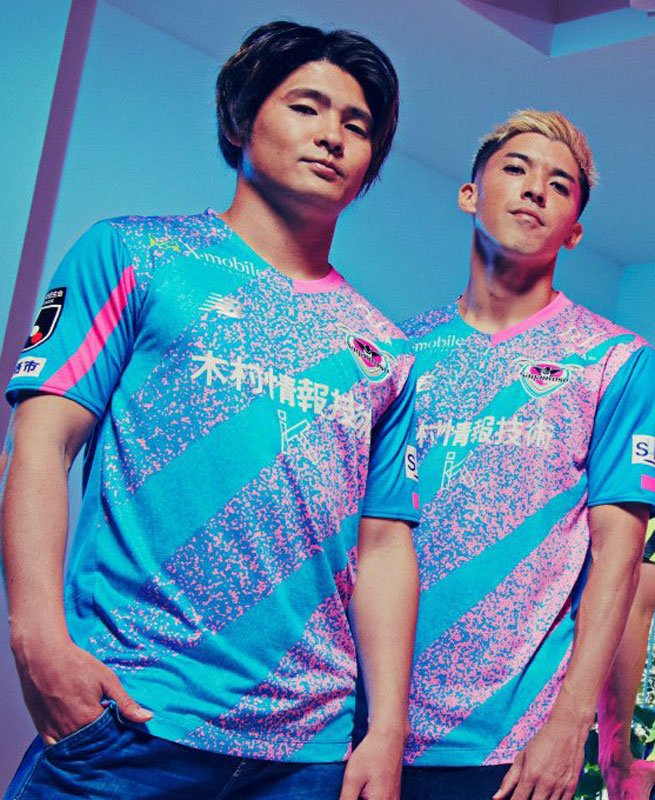 ホームユニフォームはサガン鳥栖の「スタジアムの照明やクラブカラーのスタジアム外観」などに触発されたもの。グラデーションを斜めに表現することで、攻撃的なチームスタイルをスピーディに表現したという。