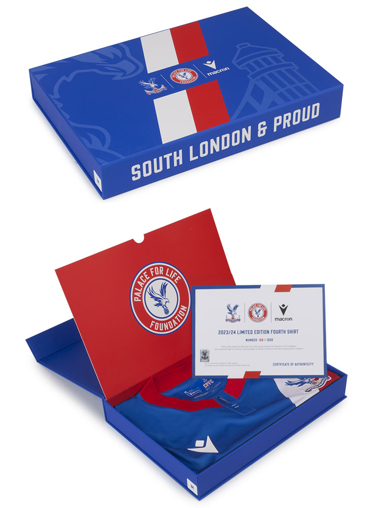 今回のユニフォームは大人用と子供用を合わせて1,000着の限定販売で、特別なボックスに収納される。なお、収益の全額がクラブ公式の慈善団体「パレス・フォー・ライフ財団」に寄付され、若年層の支援に使われるとのこと。