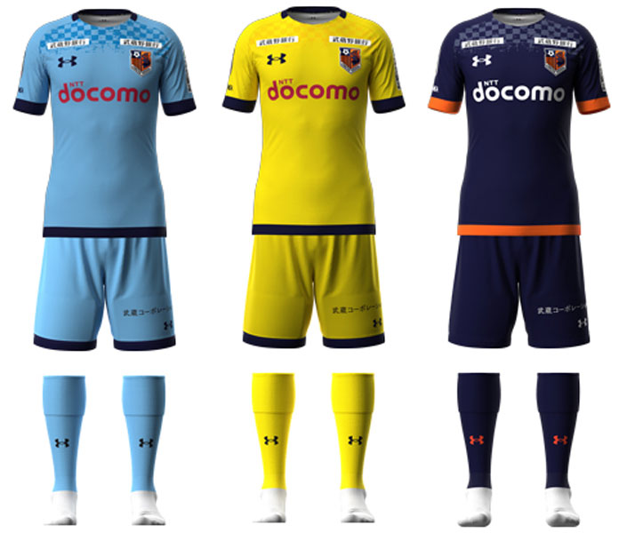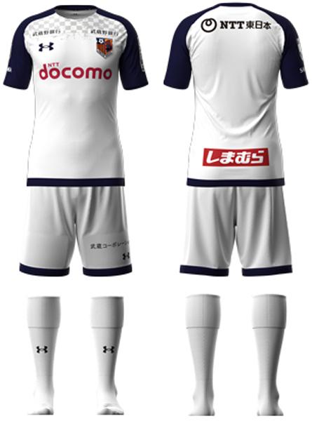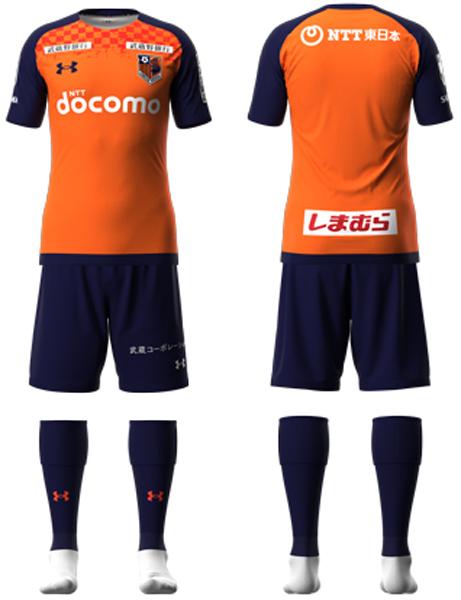 各部のスポンサーロゴは、胸に「NTT docomo」、左右鎖骨に「武蔵野銀行」、背中上に「NTT東日本」、背中下に「しまむら」、左袖に「富士薬品」、パンツ前面に「武蔵コーポレーション」。