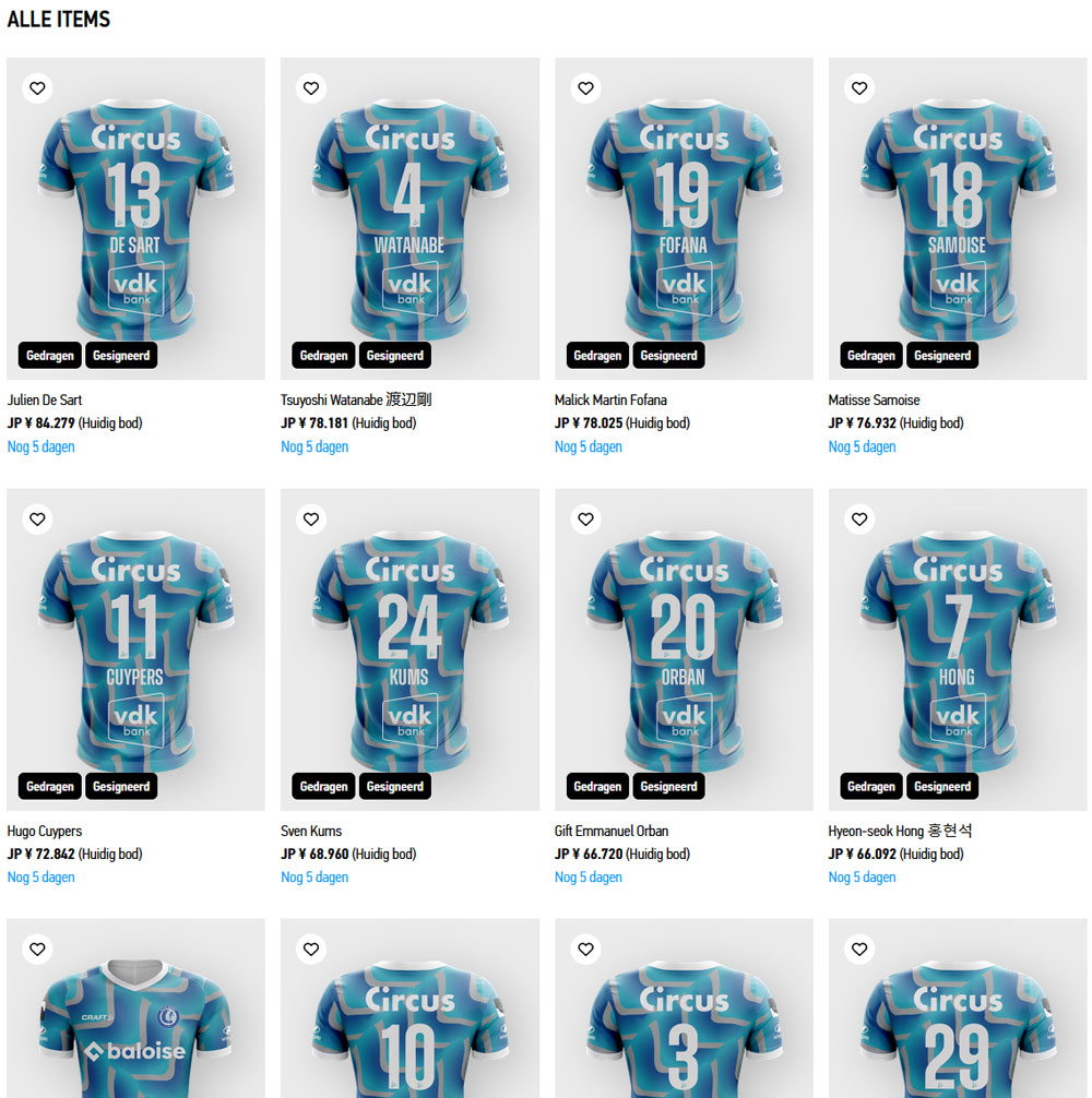 このユニフォームは渡辺も得点を挙げた21日のルーヴェンで着用。なお、選手が着用したユニフォームは現在オークションに出品されている。