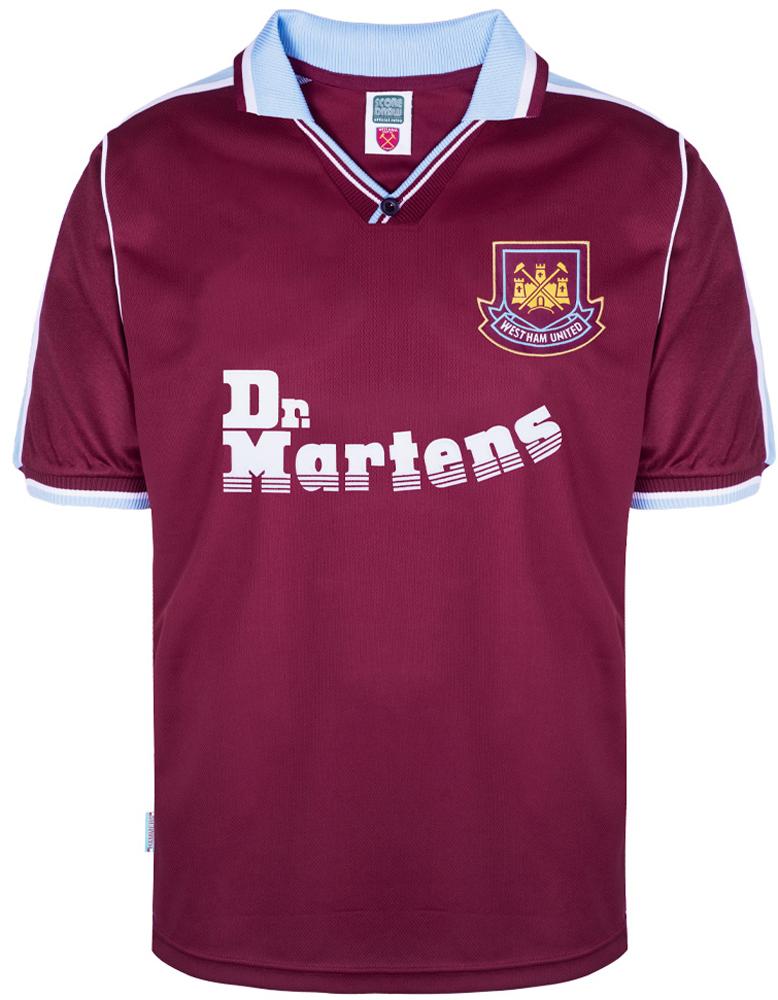 「Dr. Martens」とウェストハムは1998-99から2002-03の5シーズンでパートナーシップを結んでいた。このロゴ入りユニフォームは現在でも人気が高い。