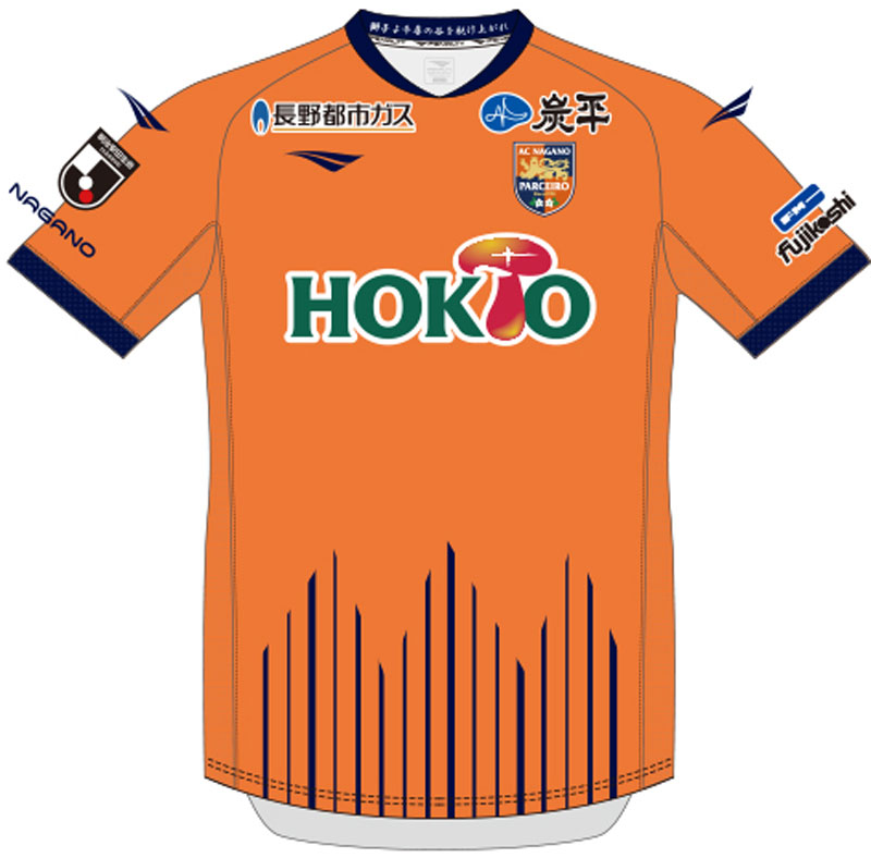 新ホームユニフォームは定番である長野県旗のオレンジを基調に、ホームタウン16市町村と北信地域・長野らしい美しい山並みを16本のネイビーのストライプで力強さと躍動感を表現している。
