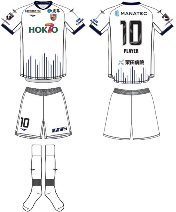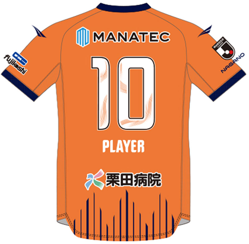 現時点での各部スポンサーは、胸に「HOKTO(ホクト)」、鎖骨右に「長野都市ガス」、鎖骨左に「炭平」、背中上に「MANATEC(マナテック)」、背中下に「栗田病院」、左袖に「不二越機械工業」、パンツに「信濃毎日新聞」。