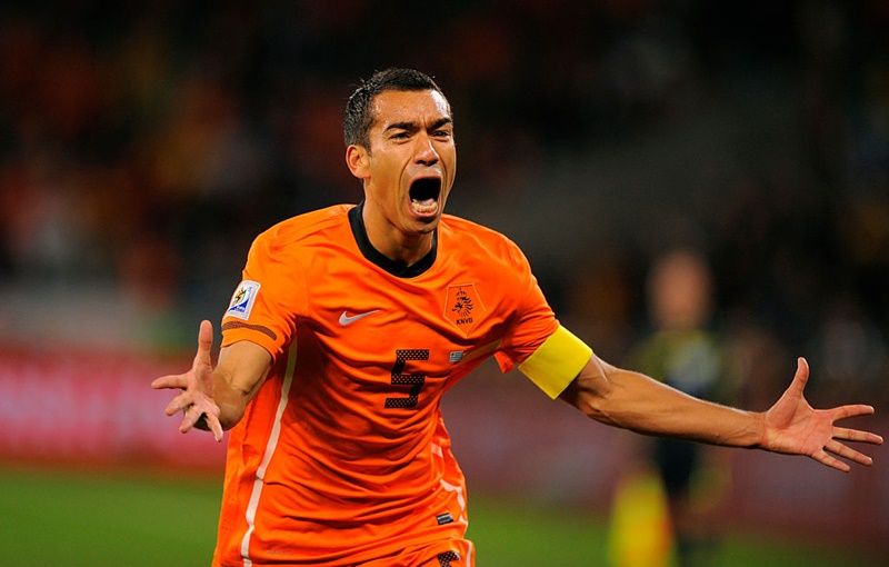 その知性とリーダーシップを買われてオランダ代表では主将を任され、2010年ワールドカップ・南アフリカ大会の準優勝に大きく貢献した。