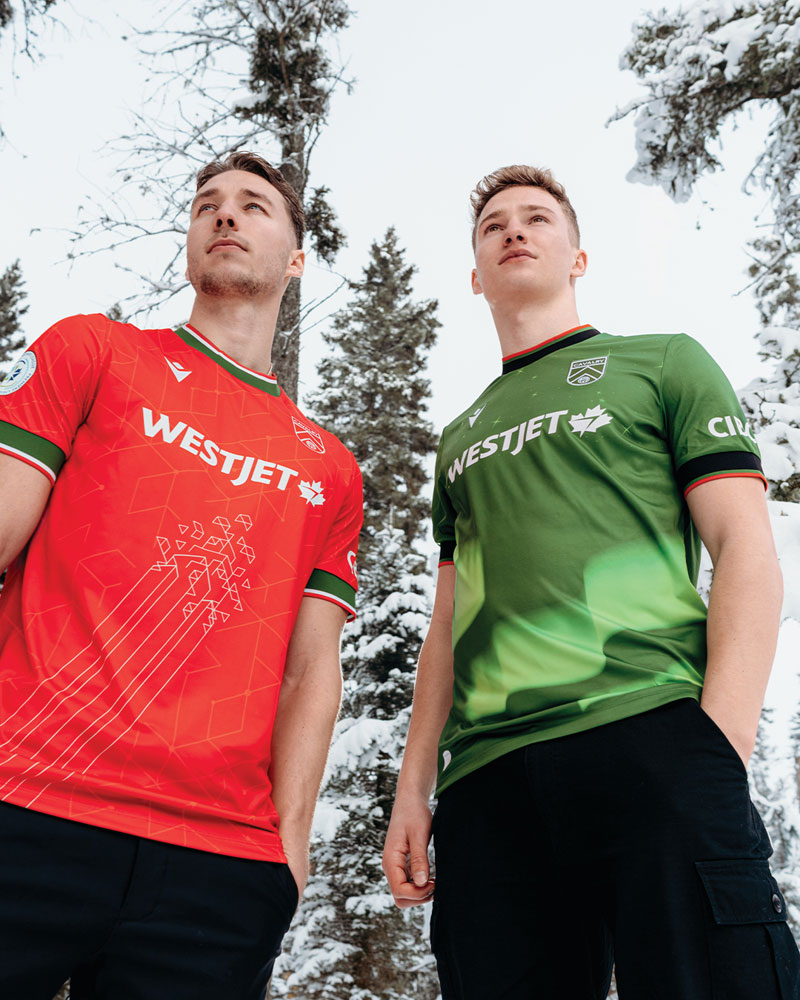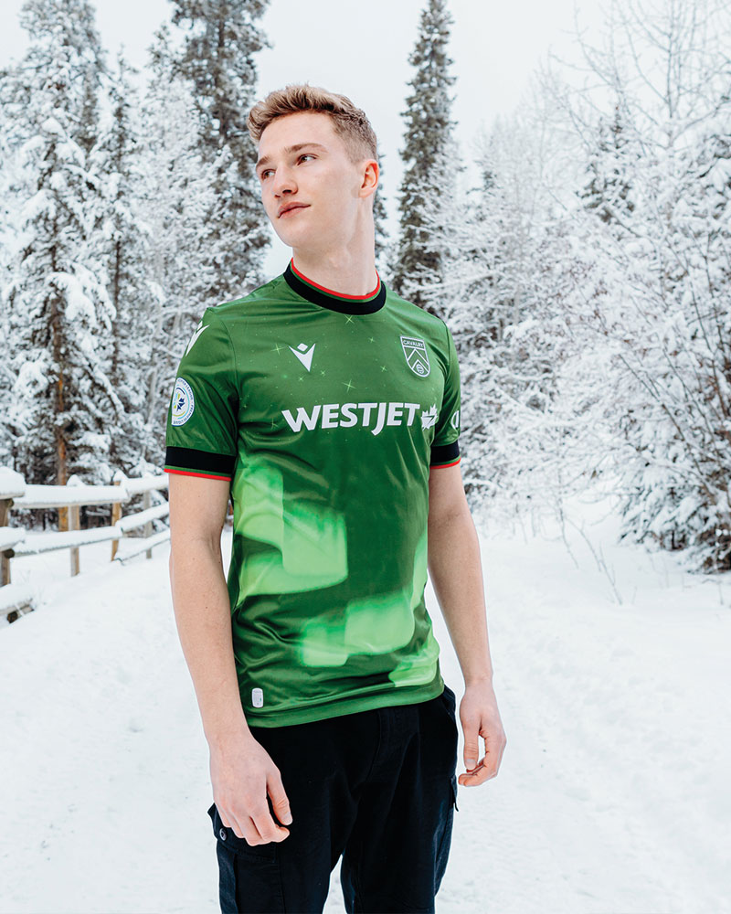 2024新サードユニフォームは、クラブのホームタウンがあるアルバータ州の夜空にインスピレーションを得たデザイン。前面には輝きを放つ星々とオーロラを描く。