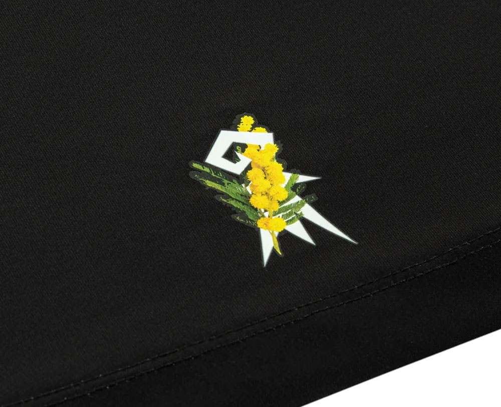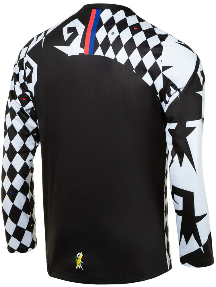 白黒をメインにチームカラーの赤と青でアクセントをつける今回のユニフォームにおいて、背面腰部分の黄と緑が強く印象に残る。