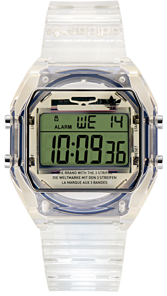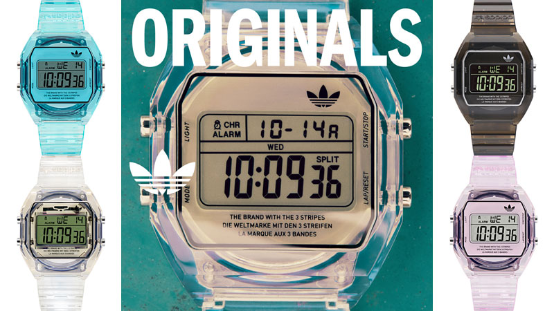 独特の雰囲気を持つ透明ボディは、腕に巻きやすい軽やかさも演出する。adidasのユニフォームやジャケットなどのトップスに合わせて使うのも面白そう!