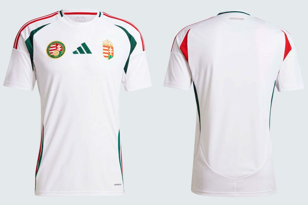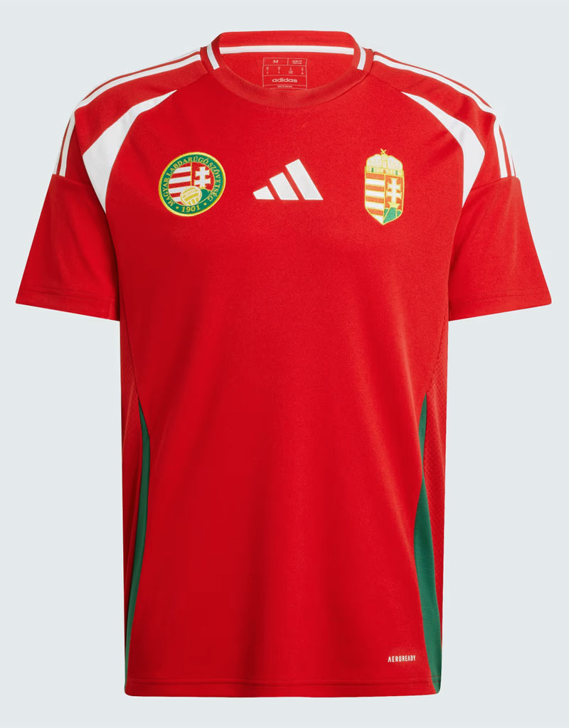 EURO2024に向けた新ホームユニフォームは、過去2大会(EURO2016、EURO2020)でのユニフォーム同様にハンガリー国旗の色を押し出したデザイン。レッドを基調にホワイトとグリーンの国旗3色で構成する。