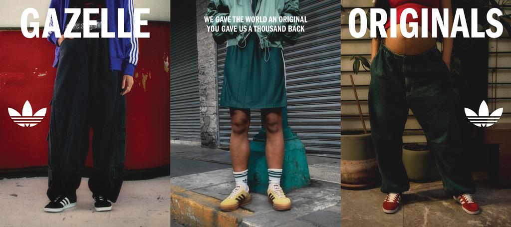 ひとつのスニーカーを1000通りに履きこなすスニーカースタイルを表現し、GAZELLE、SAMBA、SPEZIALを自分らしくコーディネートした、足元から始まる個性豊かな1000通りのスタイルとストーリーを映している。