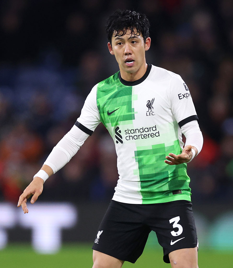 今季の遠藤を最も象徴するユニフォームは、もちろんリヴァプール伝統の赤。だが、肩を並べるとまではいかないものの、緑と白の4分割デザインを使うアウェイにも遠藤の姿がよく重なる。