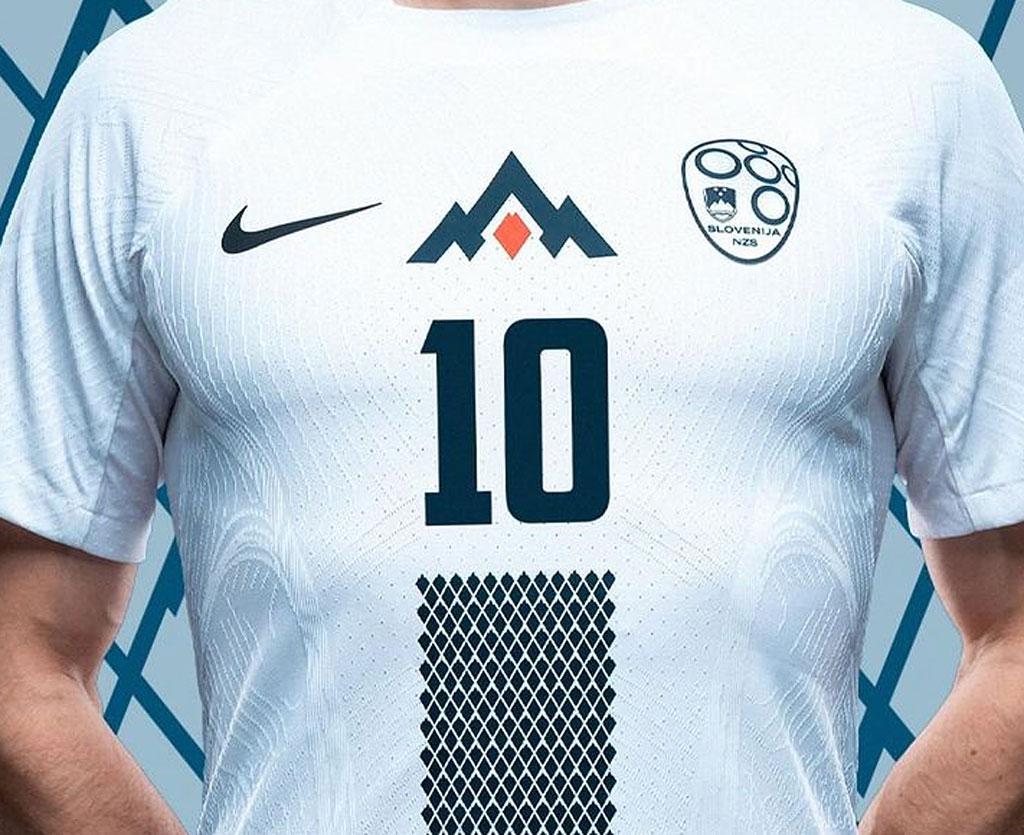 2024新ホームユニフォームは伝統的に使い続けているホワイトを基調とし、アルプス山脈に位置するスロベニア最高峰のトリグラウ山をモチーフとしたデザイン。この山は国旗や国章にも描かれ、国の象徴とされている。