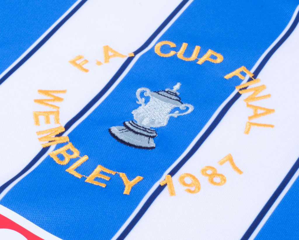 右胸にはトロフィーを囲むようにして“FA Cup Final Wembley 1987”を刺繍するが、これはオリジナルと同じ仕様。