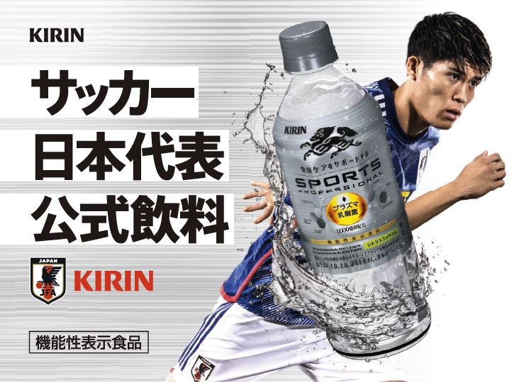 キリンビバレッジ株式会社は23日、キリンの独自素材「プラズマ乳酸菌」を配合した機能性表示食品「キリン スポーツプロフェッショナル」の発売に伴い、日本代表DF冨安健洋と「キリン スポーツプロフェッショナル」の商品提供や体調管理のサポートなどを行う、免疫ケアサポート契約を締結したと発表した。