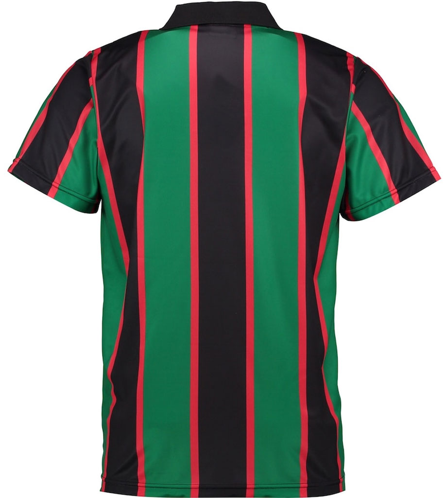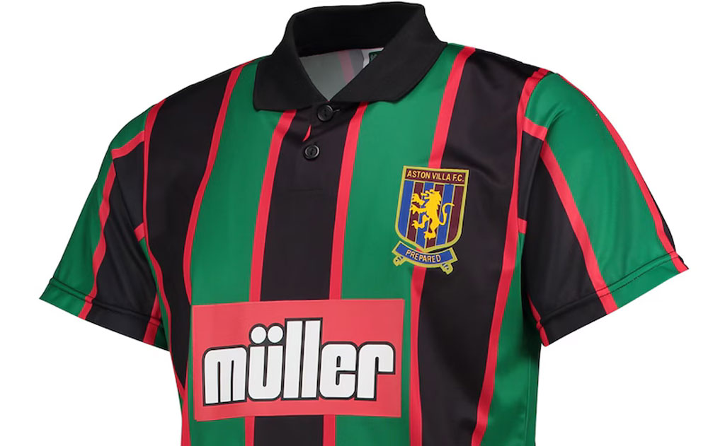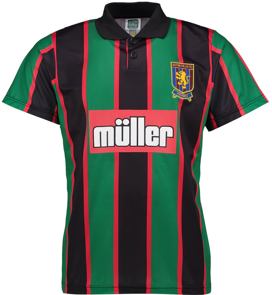 グリーン、ブラック、そして少しオレンジに近いようなレッドの3色でストライプを構成するデザイン。ヴィラ史上最も個性的なカラーリングのユニフォームだ。