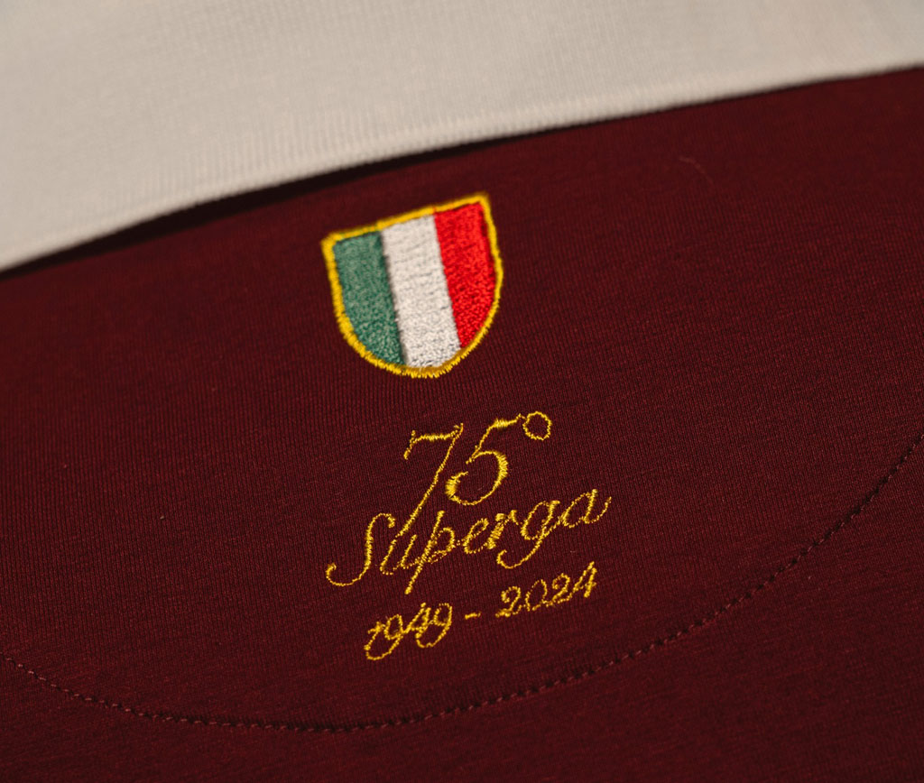 今年の5月4日で悲劇から75周年という節目を迎えることから、グランデ・トリノを追悼する限定ユニフォームを製作。シャツの前面左裾と背面首元には“SUPERGA 75”と1949-2024を刻む。