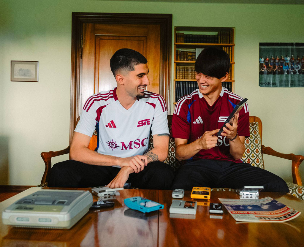 ユニフォームは過去の栄光を誇ると同時に近年のレトロブームをも意識したということで、小道具には懐かしのゲーム機器やソフトが。2000年頃は既にPlayStation全盛期だったような気もするが、ビジュアルにはスーパーファミコンが使われている。