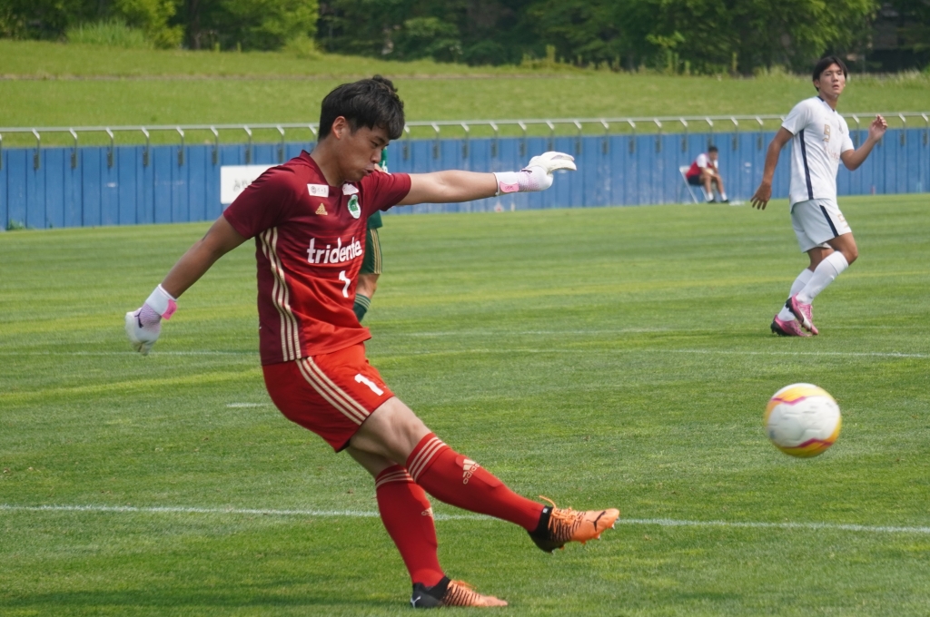 この男に死角はない。この日先発した仙台大GK泉竜聖(4年、仙台大附属明成高)は相手の布陣をずらす精密なビルドアップ、エデルソンを彷彿させる高精度フィード、正確なコーチング、ピンチを防ぐハイボール処理とセービングなど優れた総合力で仙台大ゴールに堅い鍵をかけた。