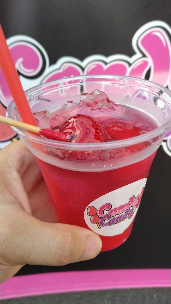 冷たいベリーサイダーとキャンディーでコーティングされたイチゴの甘酸っぱさが見事にマッチ。