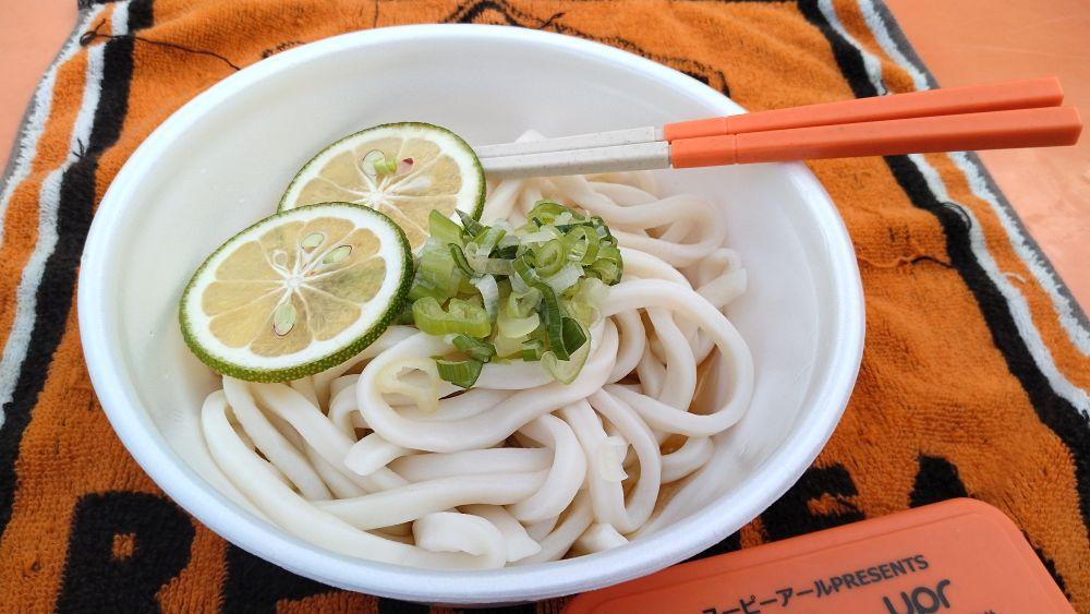 対戦相手の大分の名産品であるかぼすを使ったぶっかけうどん。 かぼすの酸味が大根おろしとの相性も良く、とにかく暑くて食欲がない時にも冷たくサッパリ食べらるのは有難いですね。