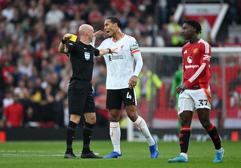 前半40分、ユナイテッドDFリサンドロ・マルティネスがリヴァプールMFドミニク・ソボスライを後ろから激しく削った場面。