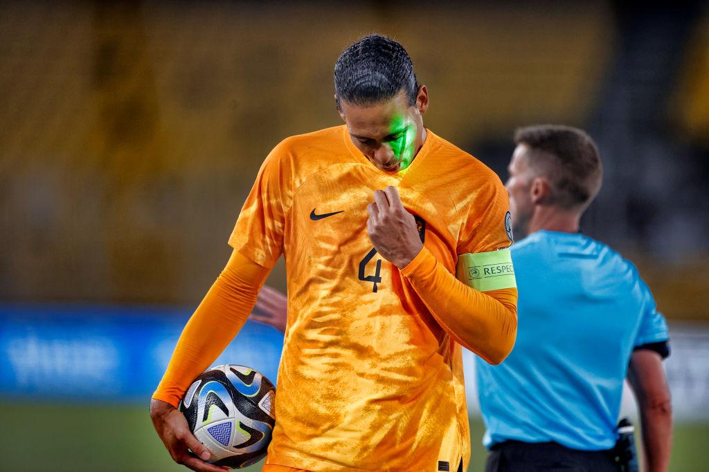 2024年のEUROウクライナ戦でフリーキックを蹴る際に照射