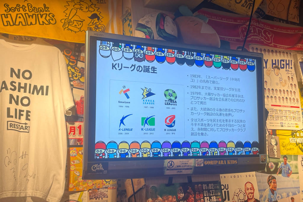 ゲストの城南(ソンナム)FC・アビスパ福岡サポーターの徐柱訓(ソ・チュフン)さんとFC安養・セレッソ大阪サポーターの呉敏哲(オ・ミンチョル)さんがKリーグと韓国サッカーの基本について解説した。