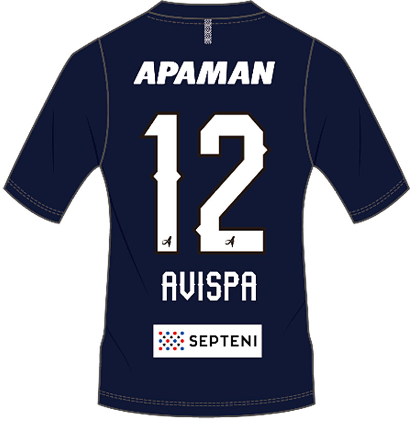 各部スポンサー企業も正式発表に。現時点では、胸に「新日本製薬」、鎖骨左に「博多グリーンホテル」、鎖骨右に「エイジェック」、左袖に「SCOグループ」、背中上に「APAMAN」、背中下に「セプテーニ・ホールディングス」、画像は無いがパンツ前面に「ピエトロ」。