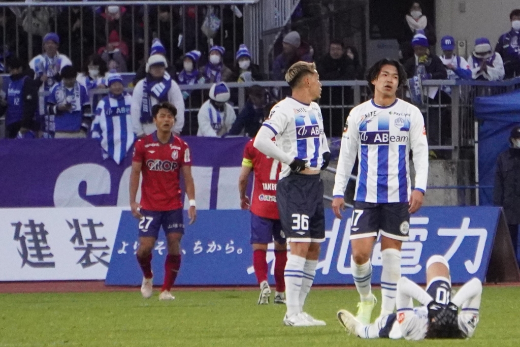前半終了間際に得点源のFWディサロ燦(あきら)シルヴァーノが負傷退場し、ハーフタイムにはMFイサカ・ゼインが脳震とうの疑いによる交代、後半9分にDF川井歩のレッドカード退場とアクシデントが重なる形で悪い流れを断ち切れなかった。