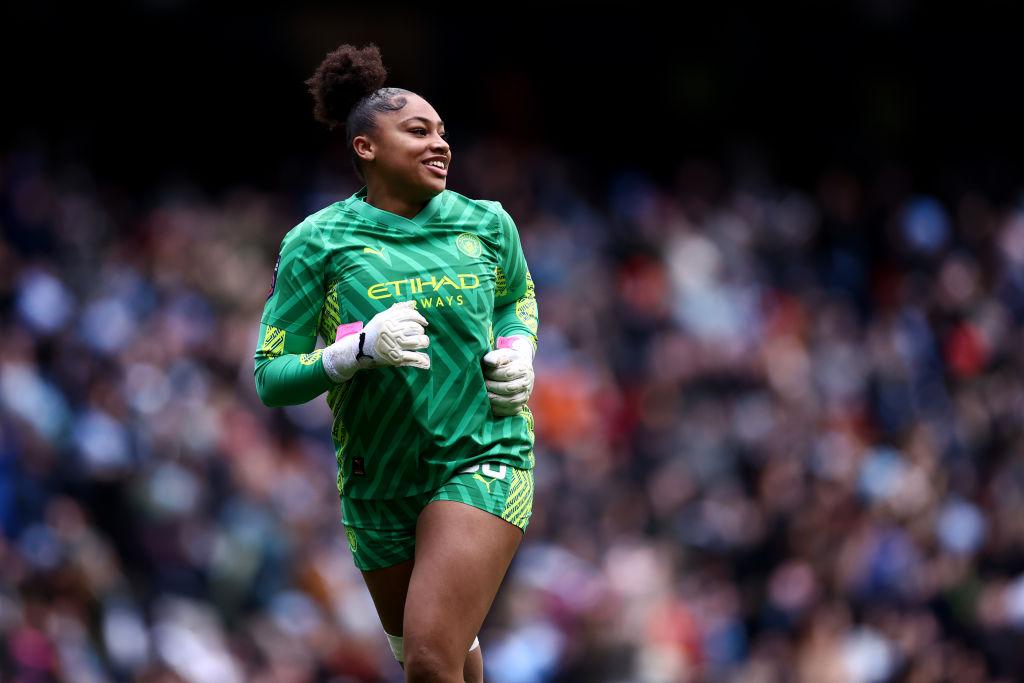 山下は試合後にチームメイトに飛びつかれていたようだが、特徴的なヘアスタイルからすると、ライバルGKのキアラ・キーティングかもしれない。