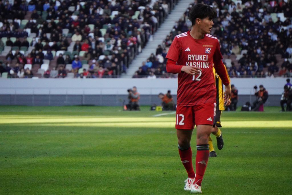 2007年度大会以来の優勝を目指す赤のシャツの流経大柏高は、J1湘南ベルマーレ内定のFW松本果成(かなる、3年-上州FC高崎)を右サイドバックで起用。今大会は体調不良に悩まされた背番号12は、初の先発フル出場でチームの勝利に貢献した。群馬県出身の松本は地元高である前橋育英高との大一番を前に「叩き潰すくらいの気持ちでやりたい」と17大会ぶりの王座奪還に向けて決意を口にした。
