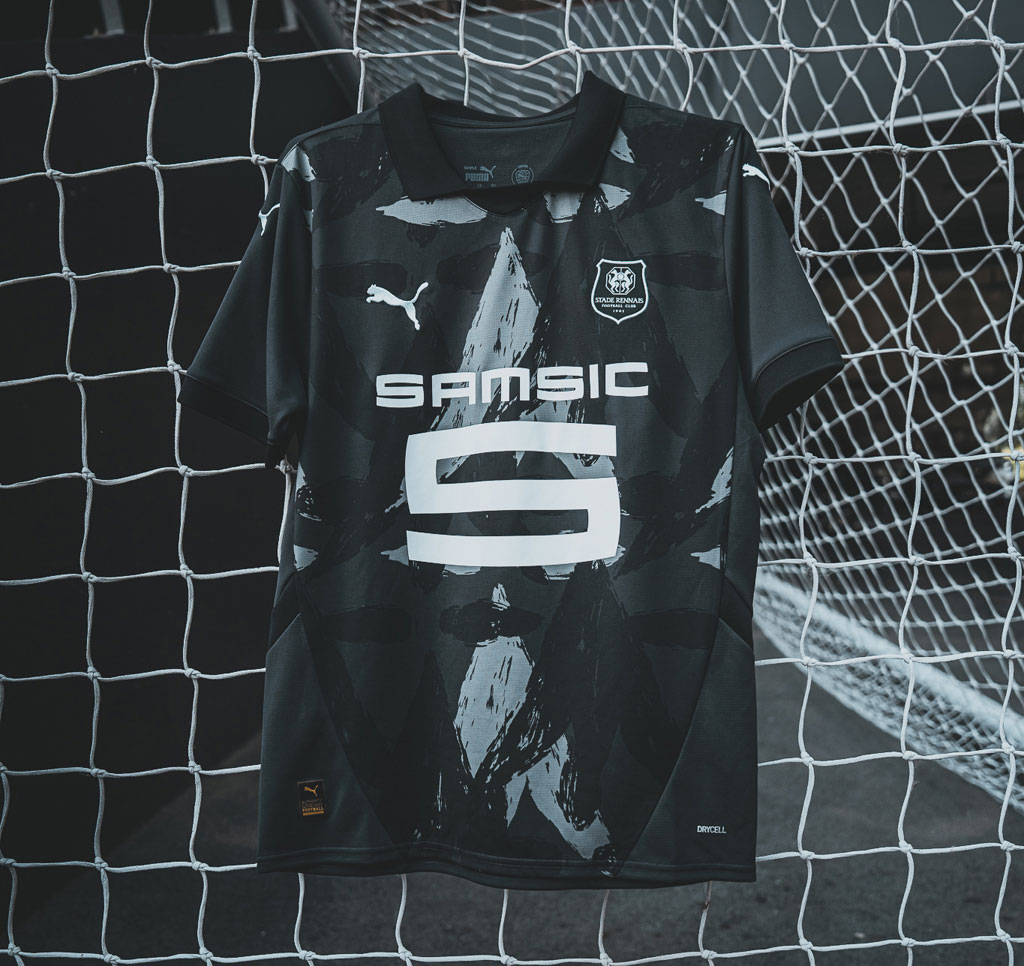 サードユニフォームはブラックを基調に、地元レンヌの芸術やストリートアートに触発された抽象的なグラフィックをデザイン。描いているのはレンヌの旗にある5つのアーミン(オコジョ)だという。