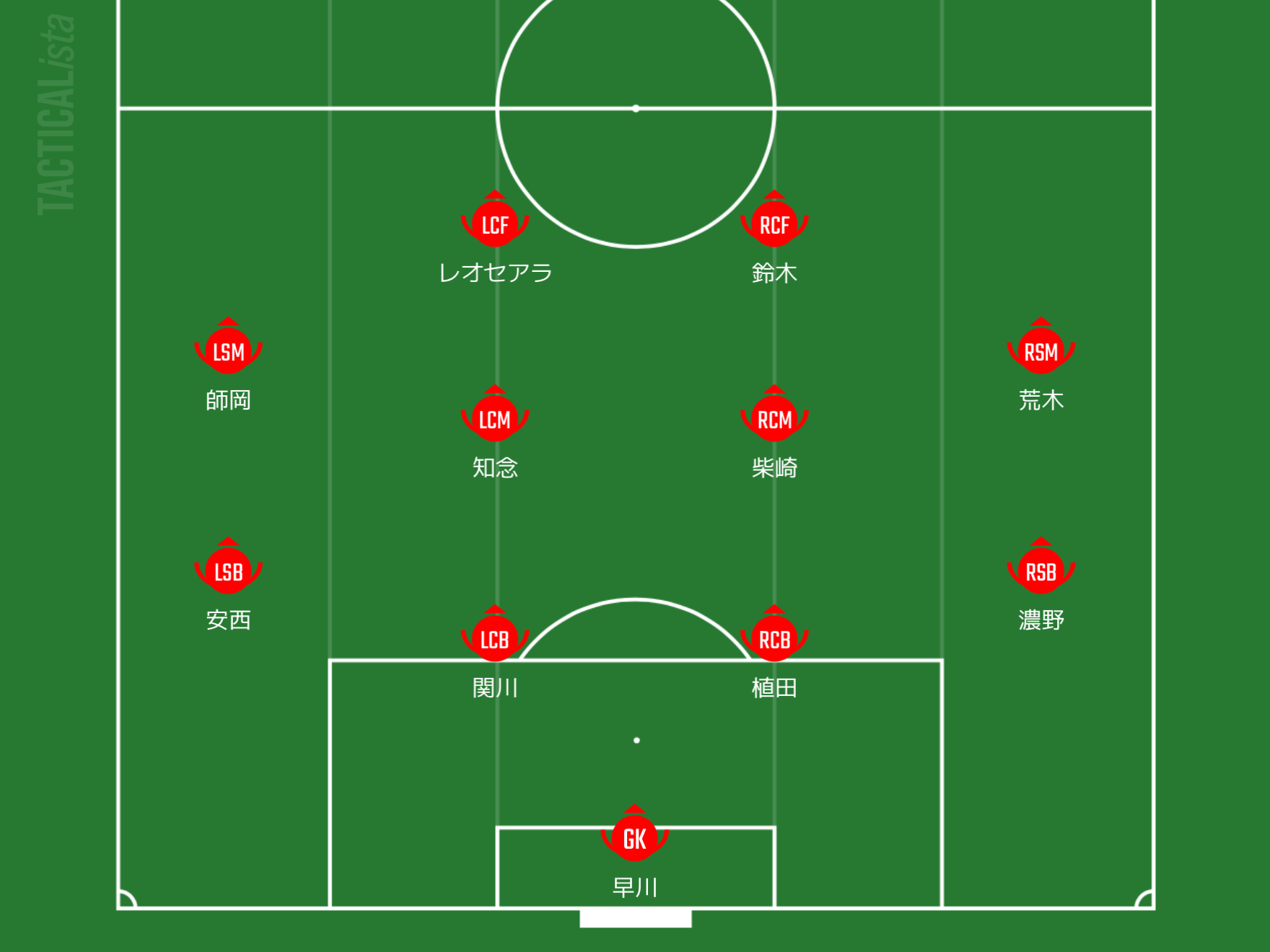 そこで右サイドバック(以下SB)で起用されたのが三竿健斗でした。問題はここにあったと思います。濃野公人の次手が本職ではない三竿になっていたことが苦しくなった原因の1つだと思います。