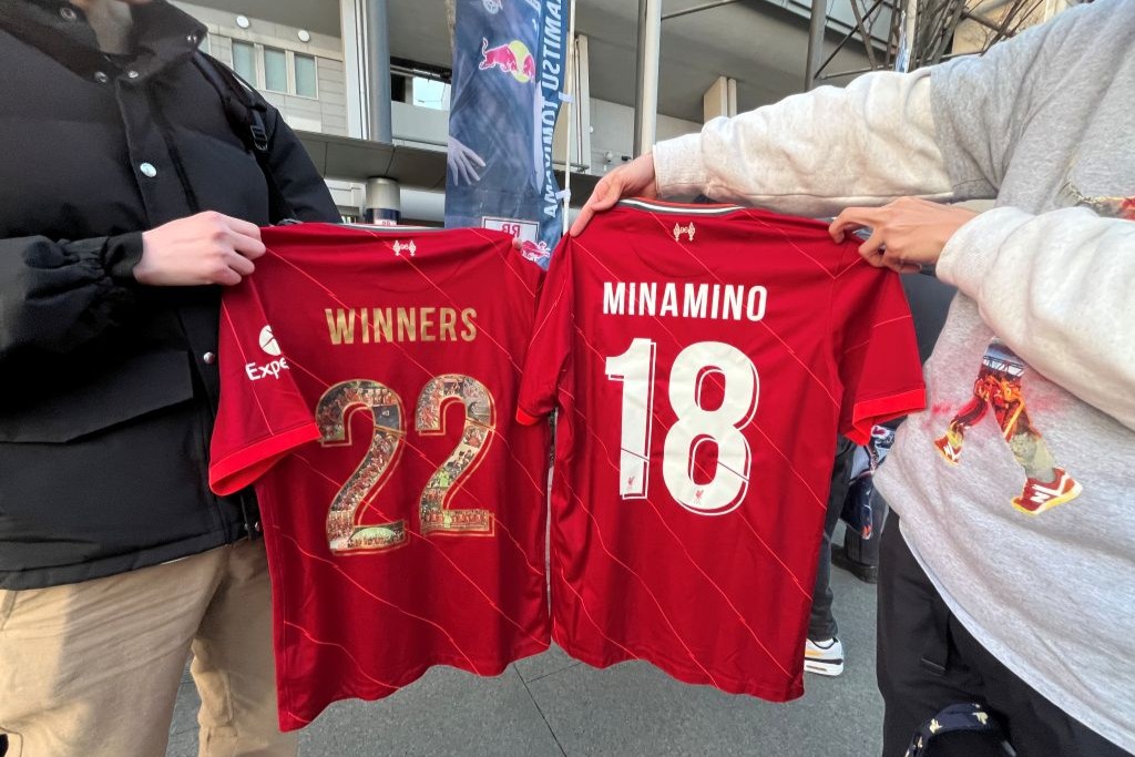 リヴァプールサポーターだと話す20代男性二人組は「めちゃくちゃ興奮しました」と、クロップ氏と原博実(ひろみ)社長が行った始球式に胸を躍らせた。