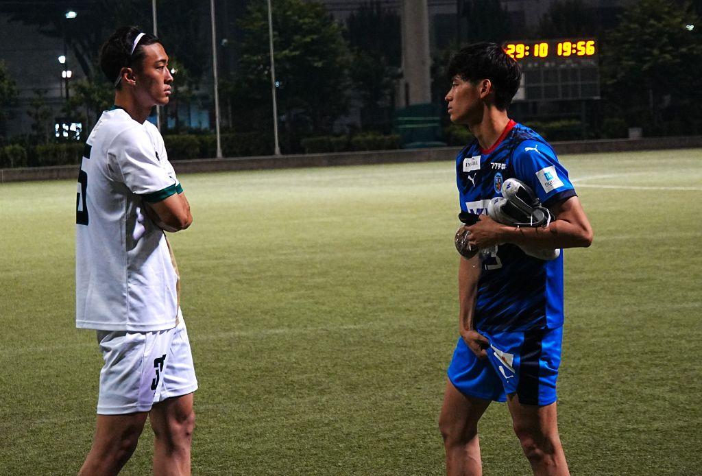 左サイドバックとして出場していた弓氣田は攻めれば的確な配給でビルドアップに貢献し、守れば身体を張ったプレーを披露。相手チームのアタッカーとして出場した本吉と佐久間に対しては、激しいチェックで自由を与えなかった。