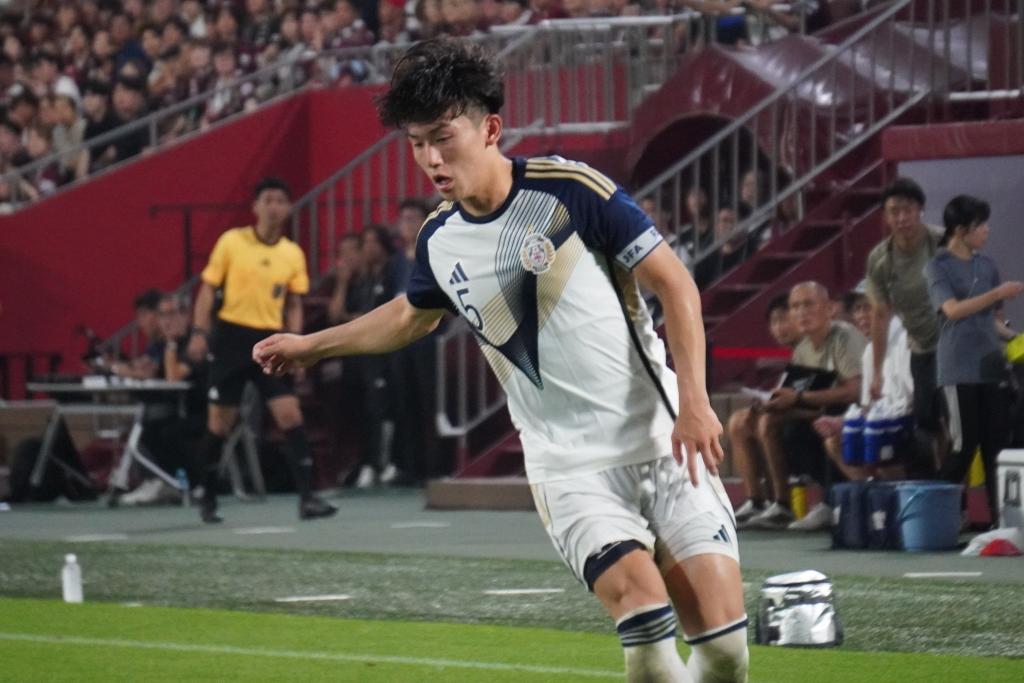 この日、左サイドバックでフル出場したDF山之内佑成主将(4年、J1柏レイソル内定、JFAアカデミー福島U-18)は、現在J1首位を走るタレント軍団相手に、身体を張った守備や推進力のあるドリブル突破で存在感を示したが、延長戦後半アディショナルタイムの失点に力尽きた。