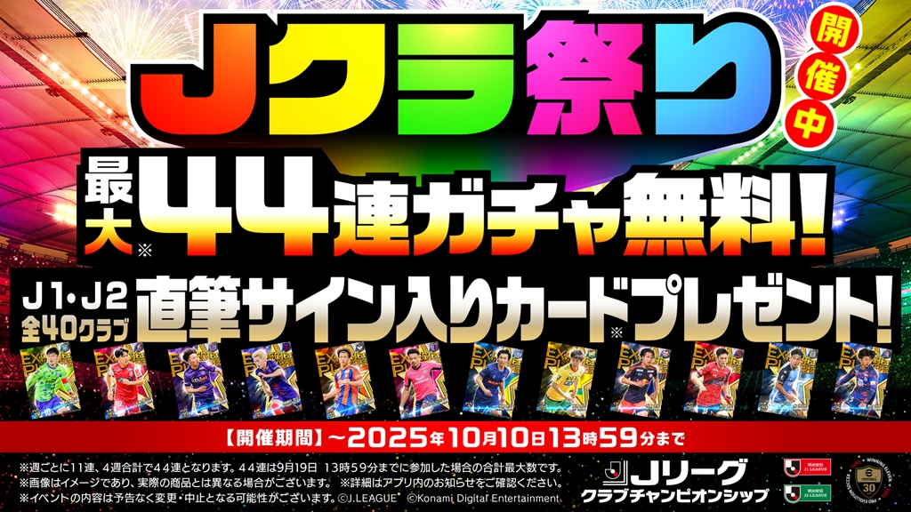 KONAMIは12日、モバイルゲーム『Jリーグクラブチャンピオンシップ』にて、「Jクラ祭り!」を開催していることを発表した。