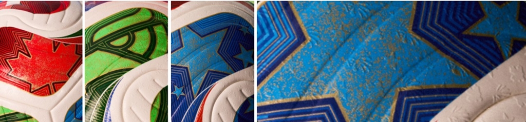 開催国である3ヵ国のアイコン、カエデの葉(カナダ)、鷲(メキシコ)、星(アメリカ)がエンボス加工されており、4枚のパネルには意図的に深いディボス加工が施された。これらの加工によりボールの飛行安定性を高めている。また、エンボス加工は雨天時のボールのグリップ力を高め、パフォーマンス上の利点をもたらす。
