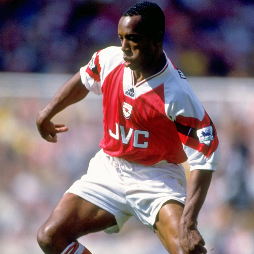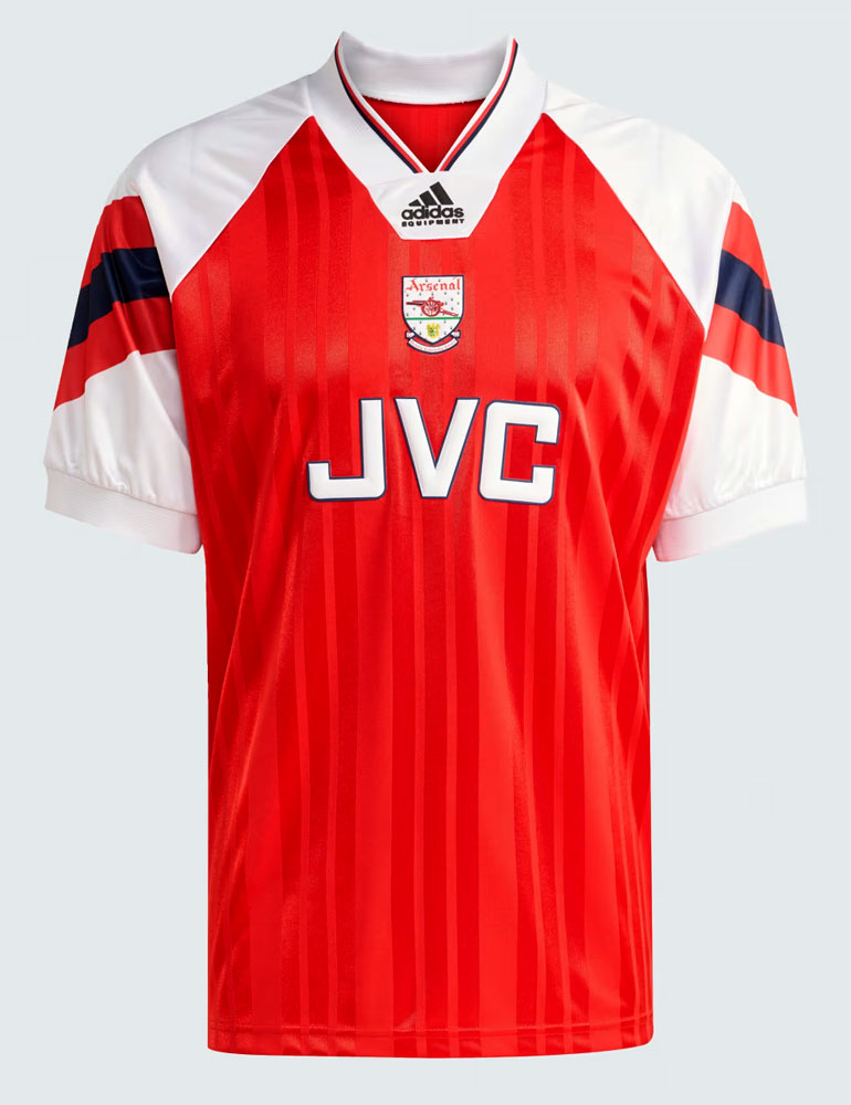 当時のアーセナルのエースだったイアン・ライトが着ているのが、今作のオリジナルである1992-94モデル。